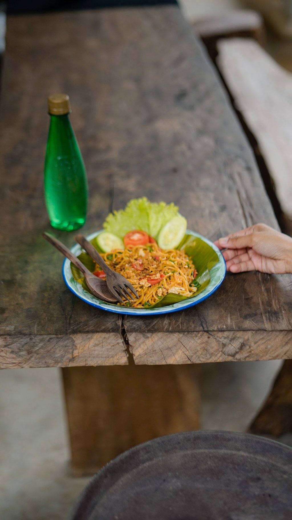 White rice with 150/160 grams of beef tail, vegetables, tail soup, chili sauce, lime, soy sauce, and Tentrem Jiwo's signature mping crackers.